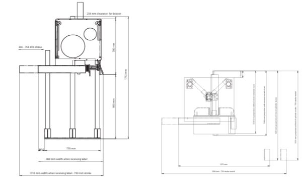 - Вылет аппликатора: 1435 мм при полном ходе цилиндра (модель с ходом 750 мм)