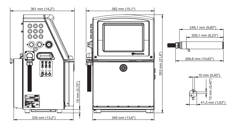 Номинальная высота символа: в диапазоне от 0,079” (2 мм) до 0,40” (10 мм), в зависимости от шрифта