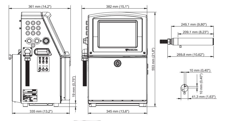 Номинальная высота символа: в диапазоне от 0,6 мм до 7 мм (0,024” - 0,276”) в зависимости от шрифта