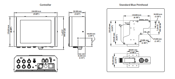 - Размеры не включают печатающую головку, дополнительные кабели и подключения к источнику питания