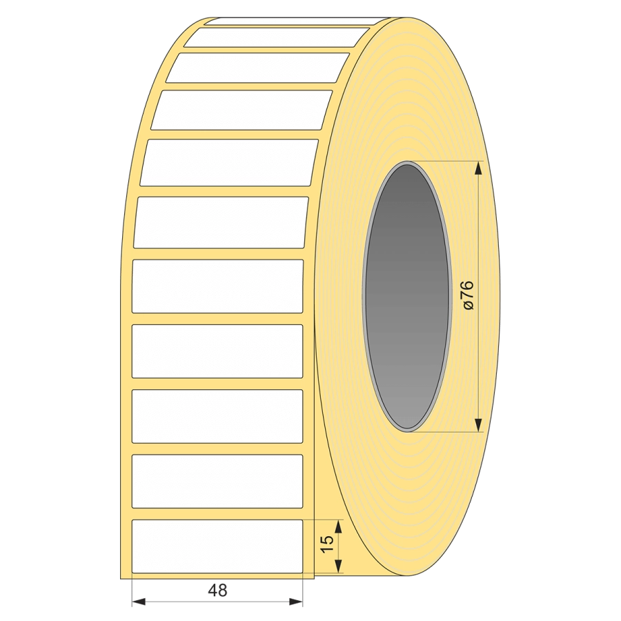 Термотрансферная этикетка полуглянец 48 мм х 15 мм, 5000 шт, втулка 76 картон UnaProf