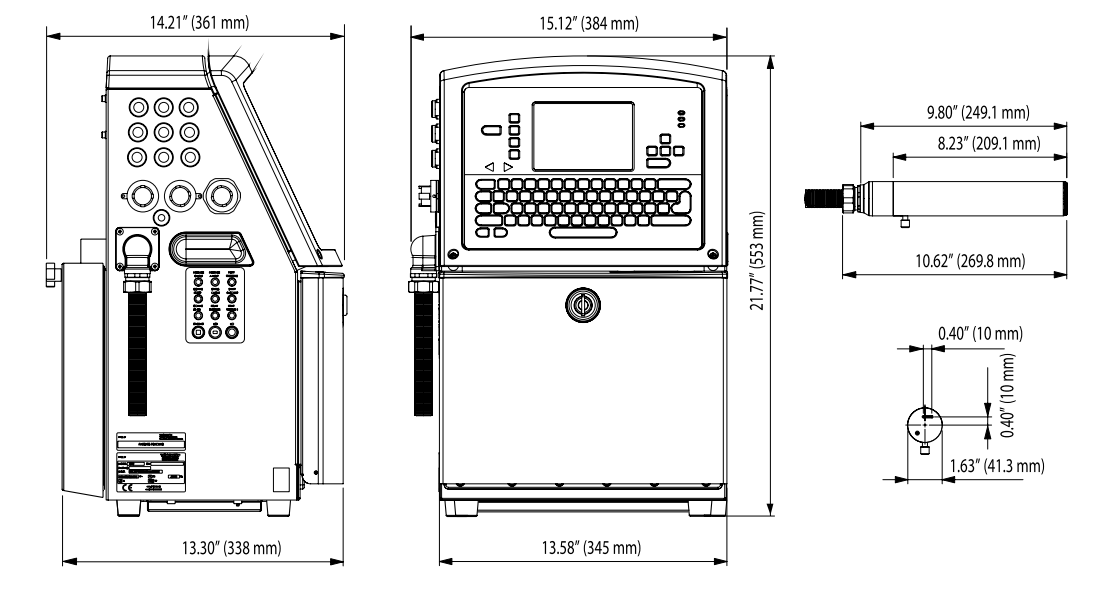 Номинальная высота символа: от 0,079” (2 мм) до 0,40” (10 мм), в зависимости от шрифта