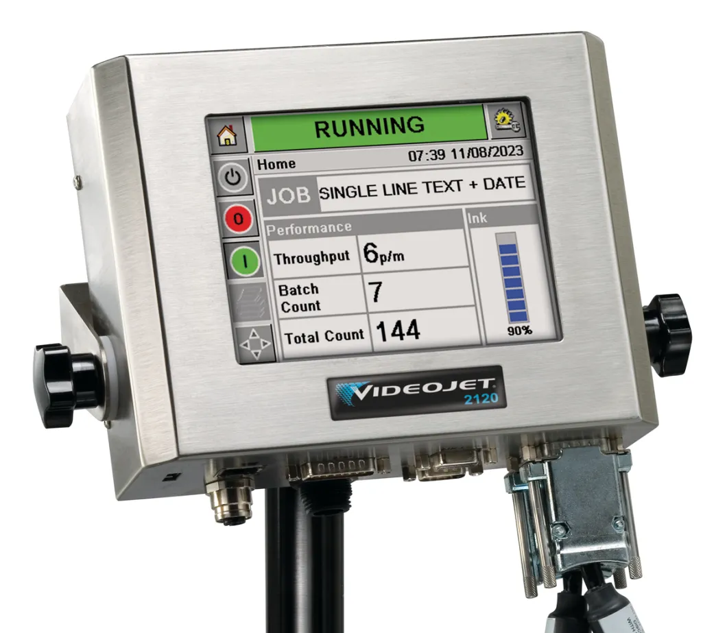 Маркиратор Videojet 2120 представляет собой практичное решение для нанесения текстовой информации, состоящей из одной или двух строк, на различные типы поверхностей. Благодаря широкому ассортименту совместимых печатающих головок и чернил устройство успешно работает как с пористыми, так и с непористыми материалами. Особенностью данной модели является возможность одновременного управления двумя печатающими головками для нанесения маркировки с обеих сторон изделия. Кроме того, система позволяет централизованно контролировать работу нескольких принтеров через единый интерфейс, что существенно упрощает процесс создания сложных многострочных надписей.