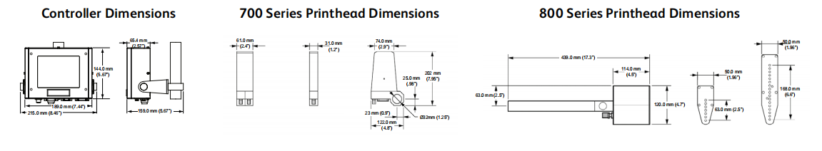 - Печатающая головка серии 800 (7 клапанов): 0,4 кг