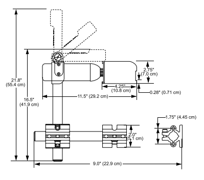 Монтажный кронштейн: трубки диаметром 15 дюймов (38,9 см) и 9 дюймов (22,8 см) и диаметром 1,0 дюйма (2,54 см); наружный диаметр (OD)