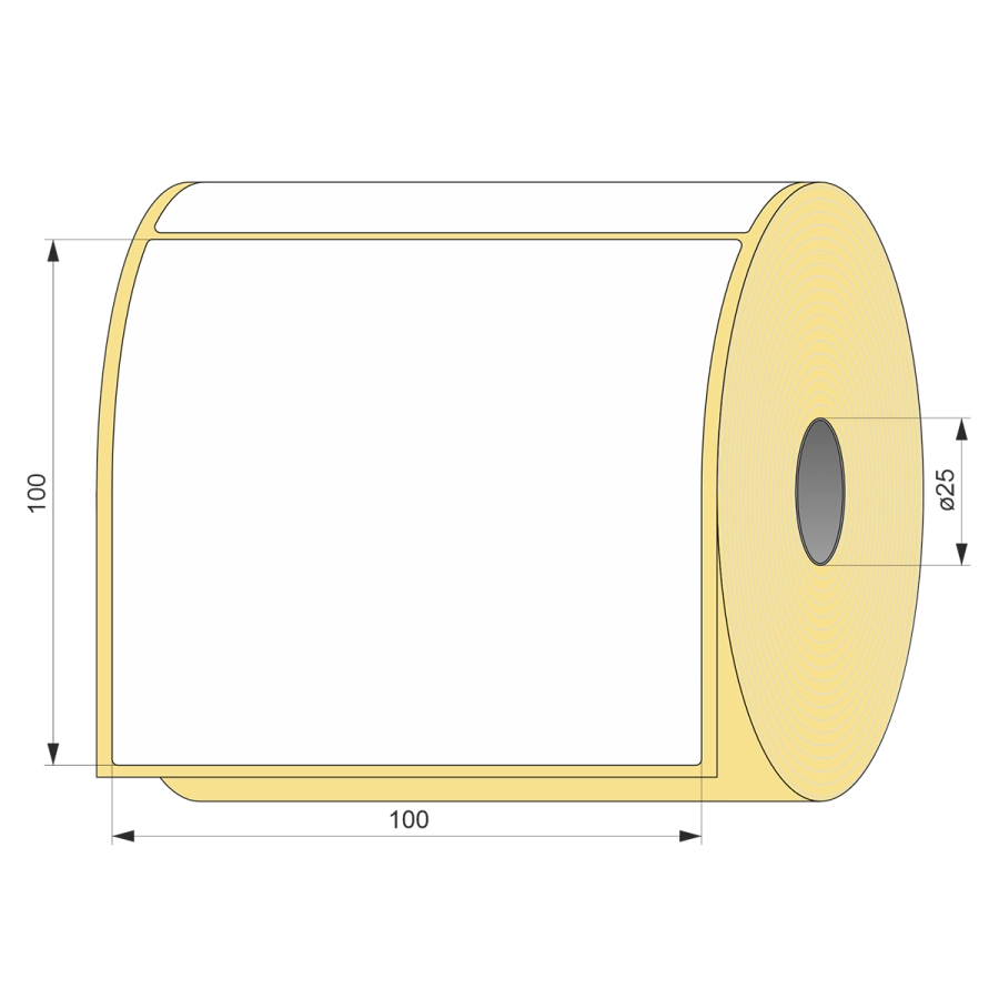 Термоэтикетка ЭКО 100 мм x 100 мм, 100 шт, втулка 25 картон UnaProf