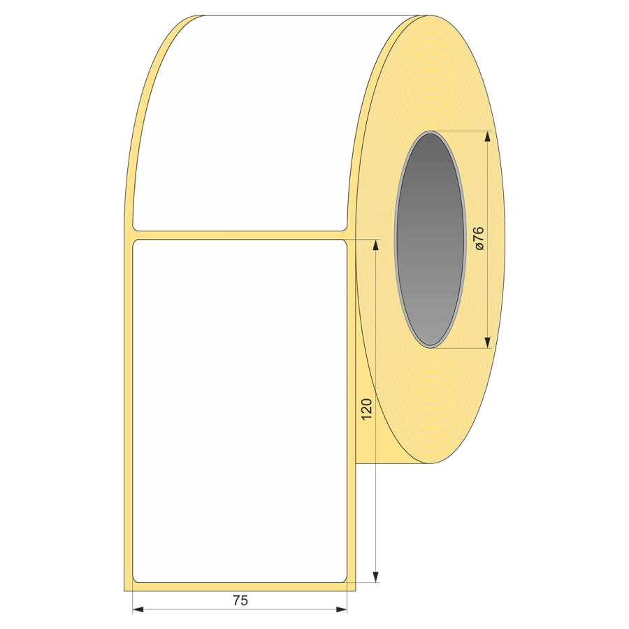Термотрансферная этикетка полуглянец 75 мм х 120 мм, 1000 шт, втулка 76 картон UnaProf