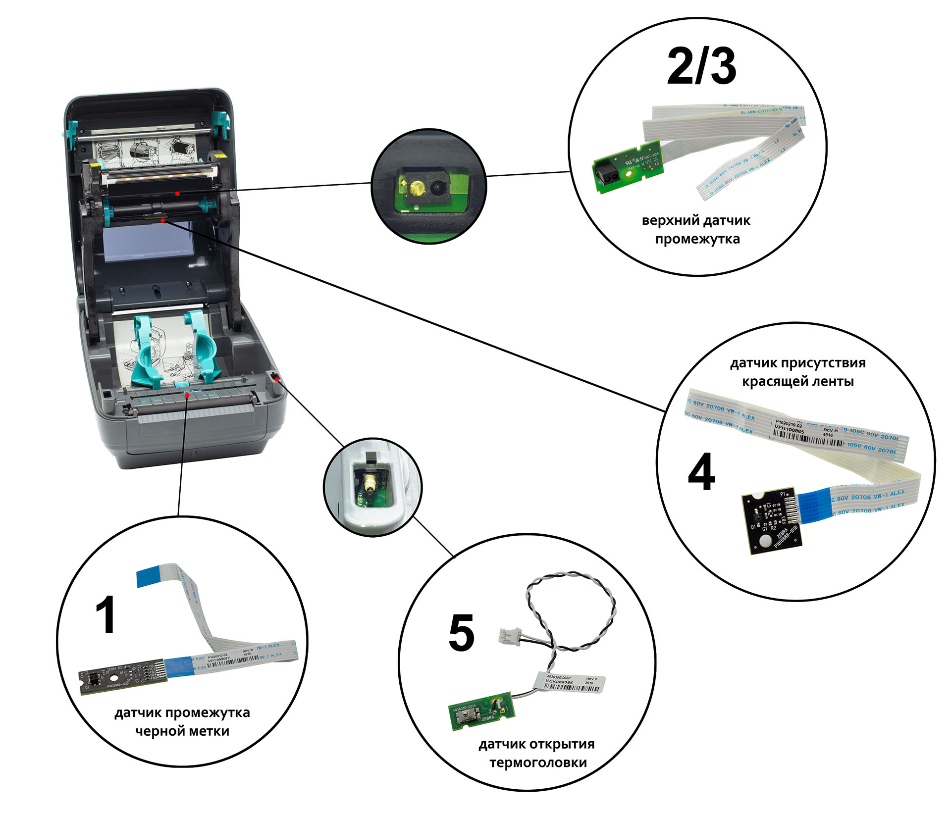 Настольные принтеры Zebra GK, Zebra GX являются эталоном надежности в своем классе. Но, как и любое оборудование, они требуют обслуживания и ремонта. Нашим сервисным инженерам иногда приходится менять вышедшие из строя датчики. Их в принтерах Zebra GK, Zebra GX может быть до 5 видов. Чтобы наши клиенты лучше ориентировались в широкой номенклатуре датчиков, мы приводим их парт-номера и артикулы по которым можно сделать заказ.